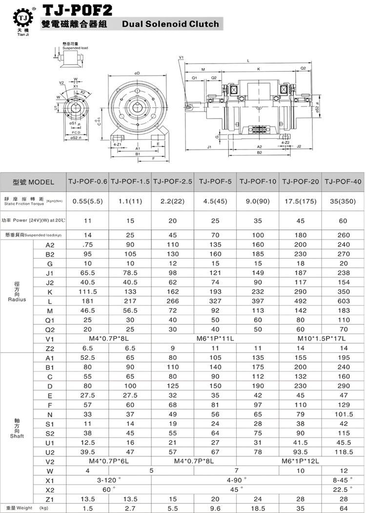 東莞天機傳動(臺灣天機牌)生產(chǎn)廠家銷售的POF2型雙電磁離合器組合體又稱軸式雙電磁離合器組合體,是由兩個電磁離合器組合而成。采用的進口原材料,臺灣生產(chǎn)加工技術(shù),用的是DC24V直流電壓,產(chǎn)品通過ISO9001質(zhì)量管理體系認(rèn)證,質(zhì)量放心可靠,讓客戶購買無憂。該POF2型雙電磁離合器組合體,軸式雙電磁離合器組合體結(jié)構(gòu)非常獨特,安裝也極為簡便。緊湊的貫通軸結(jié)構(gòu),即兩個電磁離合器都裝置在同軸上,極其的合理配置產(chǎn)著各種部件,是一種極其獨特的組合,適用于正反轉(zhuǎn)、變速、動力分配、連接、切離、高速運轉(zhuǎn)等多用途。可實現(xiàn)多種功能,由此機型可實現(xiàn)二級變速、高頻度正反轉(zhuǎn)等復(fù)雜并且高精度的控制等多種功能,同時可以實現(xiàn)傳遞機構(gòu)的簡單化,安裝和使用都極為簡便,耐用、實用。